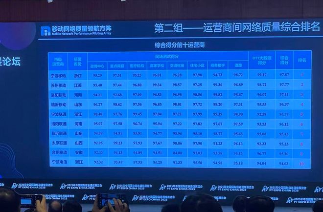 在2025年第四届移动网络高质量发展论坛上,工业和信息化部公布了2024年全国重点区域移动网络质量专项评测结果。中国移动江苏公司苏州分公司(以下简称“苏州移动”)在大型城市组别中表现突出,综合得分获得全国第二。作为苏州地区唯一获奖运营商,该成果彰显了苏州移动在网络建设优化与服务品质上的领先实力。